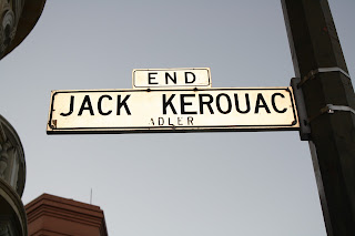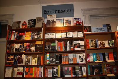 «Howl» («Hyl og andre dikt») av Allen Ginsberg. «Naked Lunch» («Naken lunsj») av William S. Burroughs. «On the Road» («På kjøret») av Jack Kerouac. «One Flew Over the Cuckoo’s Nest» («Gjøkeredet») av Ken Kesey, hvis vi ser stort på det. Vis-à-vis ligger vannhullet «Vesuvio» – stambula til mang en fordrukken lyriker og prosaist. Et steinkast nedenfor: den grønne bygården og restauranten til regissør Francis Ford Coppala. På den andre siden av gaten: kjendisrestauranten «Tosca». Et par kvartaler ovenfor: Alt fra strippebuler til kirken med gatenummeret 666, som den plent nekter å skru fast på veggen.